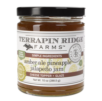 Iowa state fair winner! Amber ale combined with fruity pineapple and the right amount of heat from spicy jalapeños create a rich, full bodied and flavorful jam. This beer jam makes a delicious glaze for pork, poultry and fish. Fold into mashed sweet potatoes and serve with grilled salmon for a real treat. Yummy on a grilled chicken sandwich.